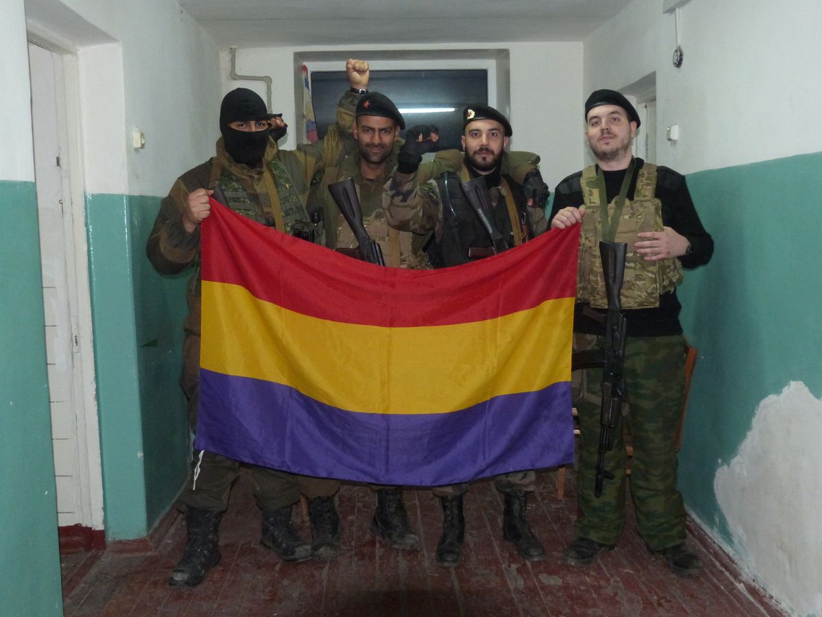 “En total somos ocho españoles luchando en la brigada Prizrak. Dos acaban de llegar y otros dos están a punto de volver a España”, nos explica el comandante español. Llegamos al cuartel, donde nos dan la bienvenida los franceses Victor Lenta y Nikola Perovic. “Welcome to Novorossiya”. Lenta y Perovic son nacionalistas franceses, comandantes de la unidad continental, la misma en la que luchan los voluntarios españoles y serbios. Ambos son veteranos del ejército de Francia, que ahora les considera terroristas. “No podemos volver a Francia porque nuestro Gobierno nos impondría una pena de diez años de cárcel”. Tienen claro cuál es su objetivo: “Nuestra unidad está integrada en la brigada Prizrak, que ideológicamente es muy heterogéneo. Aquí te puedes encontrar nacionalistas, ultranacionalistas o comunistas, pero eso no es ningún problema. No discriminamos a nadie por su ideología, religión o raza. Nuestro enemigo es la OTAN, así que recibimos a cualquiera siempre que esté dispuesto a luchar contra el enemigo común”, afirma Victor Lenta.