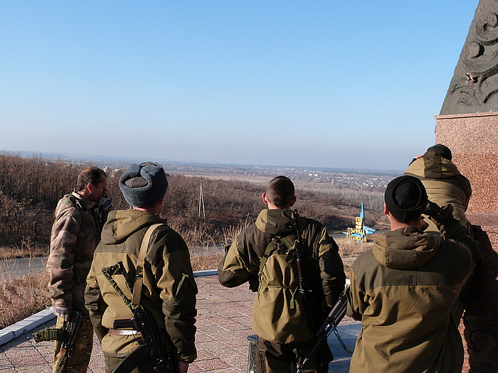 Han erigido un puesto de control fuerte en la única carretera que cruza el frente, al lado de un puente que volarían, si fuera necesario, para cortar completamente las comunicaciones con Lugansk. Las medidas de seguridad son duras: hay alrededor de cuarenta personas en el puesto, armados con los famosos Kalashnikov, con otro grupo de milicianos escondidos en las trincheras cavadas los cerros. Por motivos de seguridad, es imposible dar esa información o sacar fotografías. Se palpa la tensión y el frío del invierno hace aún más difícil la defensa del puesto.