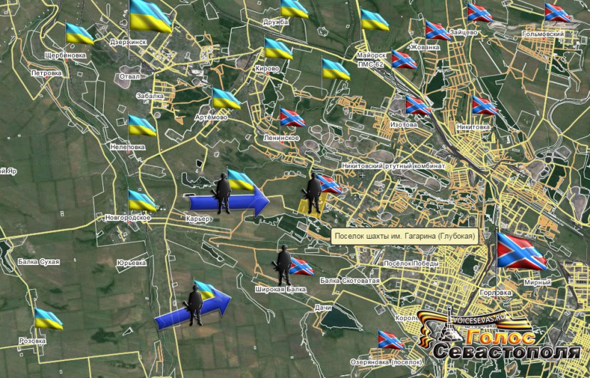 El principal punto de lucha en la República Popular de Donetsk ha estado en Gorlovka, donde la intensidad del bombardeo ha aumentado notablemente, especialmente al oeste de la ciudad, donde el ejército ucraniano ha tratado de avanzar y probar las defensas de Gorlovka en la zona de Shirokaya Balka. Tras el intento de la milicia de atacar al ejército ucraniano para recuperar el control de la carretera entre Gorlovka y Dzerzhinsk del día anterior, esta vez el ataque ha venido del lado ucraniano. En esta zona se ha utilizado desde armas pequeñas a artillería pesada. Por la tarde, la intensidad del bombardeo ha aumentado y el ejército ucraniano ha utilizado tanques en la zona de Shirokaya Balka.