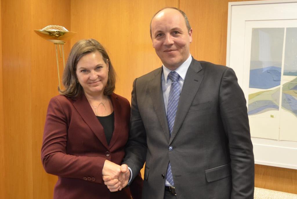 La principal reunión de Parubiy el día 27 es con la Secretaria de Estado para Asuntos Europeos y Euroasiáticos de los EEUU, Victoria Nuland, probablemente el mayor apoyo directo al lobby pro-ucraniano dentro de la actual Administración Obama. En su página de Facebook, Parubiy señala haber apelado al liderazgo estadounidense como garante de la seguridad de Ucrania, recordando la necesidad de actuar y de asumir su responsabilidad. Putin interpreta la falta de decisiones como una invitación para una nueva agresión, según Parubiy. “Ucrania necesita saber si tiene el mundo detrás de ella o está sola”. “Es el momento de actuar”, afirma haberle dicho a Nuland.