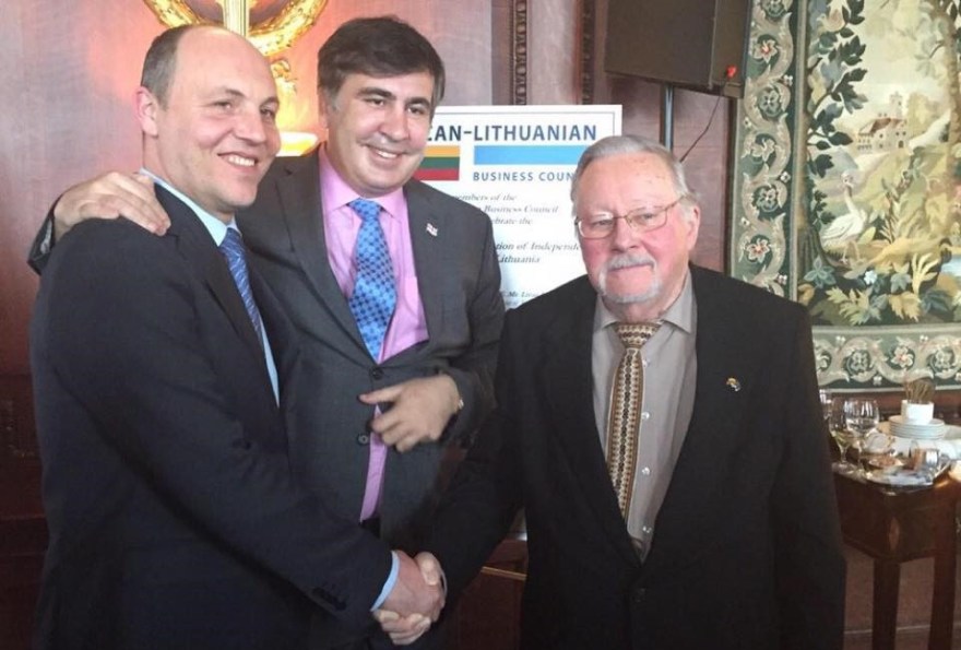 El mismo día 25, en la Biblioteca del Congreso, Parubiy participa junto a Mikhail Saakashvili y Vytautas Landsbergis, expresidentes de Georgia y Lituania, en el 25 aniversario de la restauración del Estado lituano. La celebración se convierte, más que en una fiesta lituana, en un acto de reivindicación del régimen de Kiev.