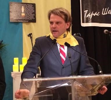 Además de Paruby y de miembros de la UCC, interviene en el acto el Ministro canadiense de Ciudadanía e Inmigración, Chris Alexander. Enfundado con un pañuelo amarillo de Maidan durante su discurso, definido como apasionadamente pro-ucraniano, el gesto simboliza el inequívoco compromiso del Gobierno de Canadá con la nueva Ucrania.