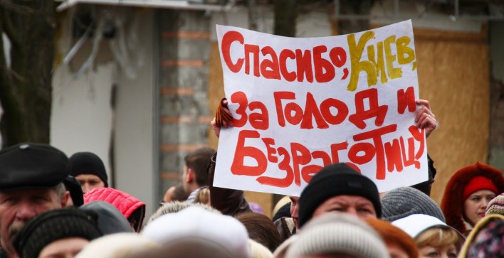 ¡Poroshenko! La responsabilidad de todo este sufrimiento, lágrimas y dolor del pueblo recae sobre usted. ¡Pare el genocidio de la gente común! Nuestras exigencias son legítimas y justas y están basadas en el derecho internacional.