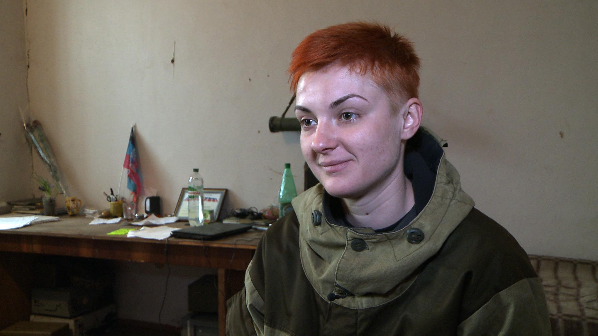 Se identifica por su nombre de guerra, Nut, una joven veinteañera de pelo corto y pelirrojo. Viste el uniforme rebelde estándar. Prefiere no revelar su identidad. Nut está sentada en su habitación en esos austeros y escasamente amueblados barracones del distrito de Petrovsky, uno de los suburbios al sudeste de la ciudad rebelde de Donetsk. Una metralleta se apoya contra su estrecha cama. Su leal perro, Loki, gruñe a los visitantes.