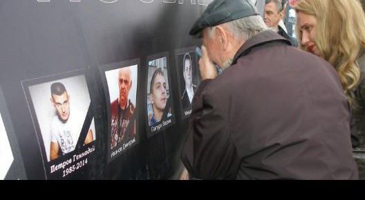 A lo largo del día, miles de personas mostraron sus respetos a las víctimas de la masacre en el campo de Kulikovo, frente a una Casa de los Sindicatos rodeada por una valla pintada para la ocasión con los colores ucranianos. Para acceder a la zona, la policía había instalado detectores de metales que, junto al gran despliegue policial y militar del que Ucrania hizo gala el 1 de mayo, con un desfile militar en el mismo lugar, pretendía no sólo evitar provocaciones o enfrentamientos sino disuadir posibles protestas.