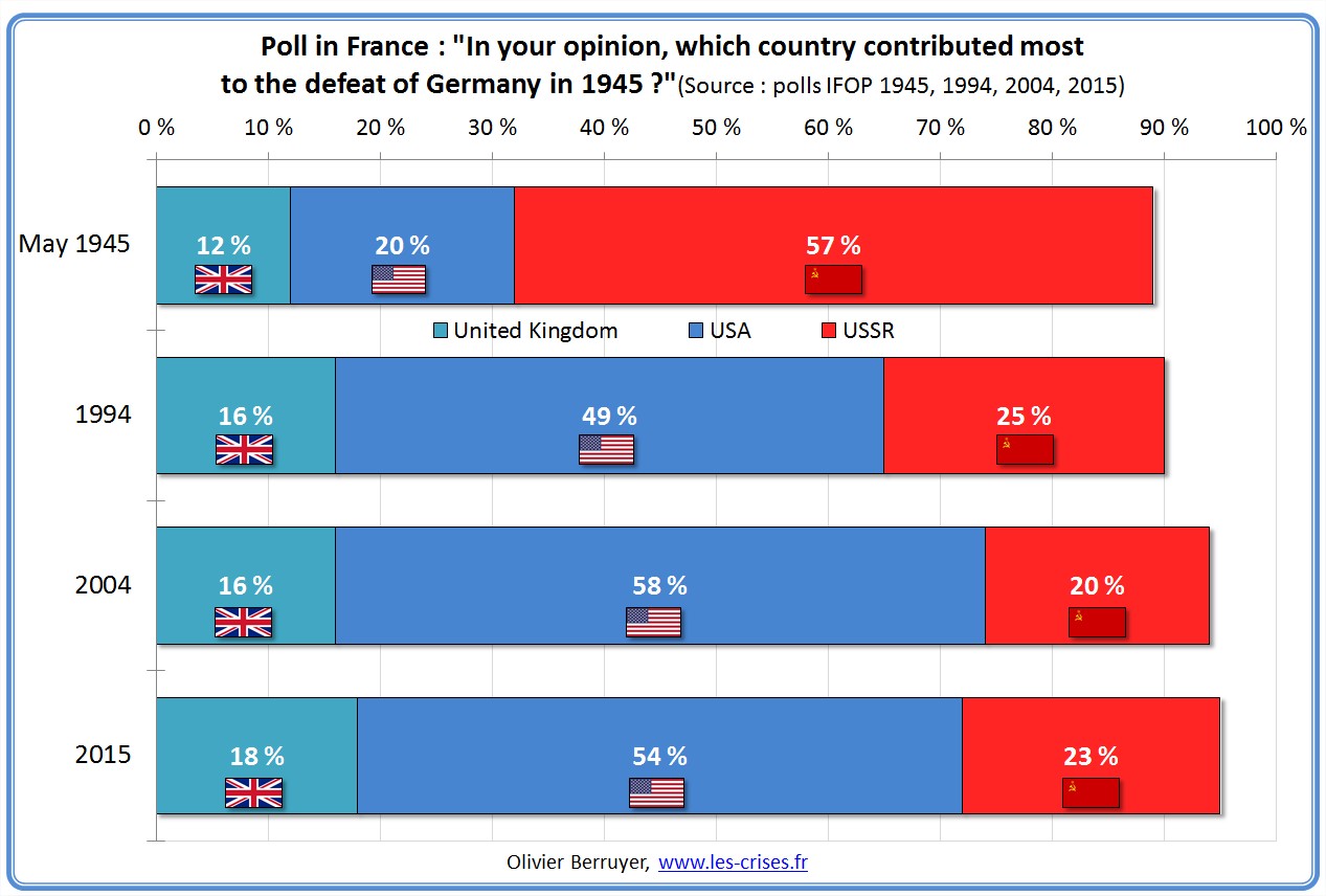 Cambio en la percepción social en Francia a lo largo de los años: «¿Qué país contribuyó más en la derrota de la Alemania Nazi?»