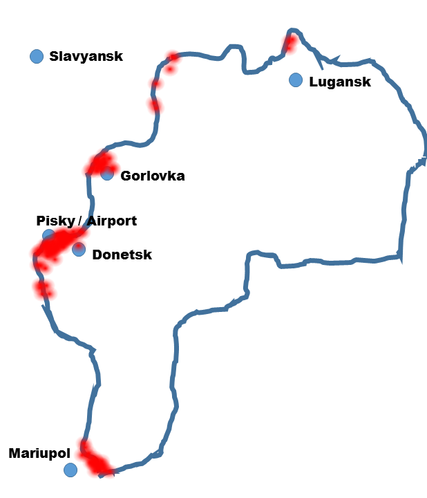 Hay que destacar la extensión de las actividades con foco en Gorlovka, la zona de Pesky hacia Donetsk y el norte de Mariupol y también las “puertas” entre Gorlovka y Lugansk y entre Donetsk y Mariupol.