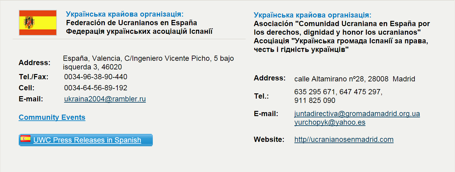 Otro participante en el acto de protesta, Yuriy Chopyk, insistió en la importancia del apoyo de los que “se oponen al régimen y pretenden eliminar, de forma pacífica, el Gobierno de Azarov [en aquel momento primer ministro de Yanukovich] y celebrar elecciones presidenciales y parlamentarias anticipadas”. Chopyk es el líder de la “Comunidad Ucraniana en España por los Derechos, Dignidad y honor de los Ucranianos”. Esta organización tiene su origen en la Asociación Ucraniana en España, impulsada en 1994 por Theodor Barabash. Hasta su muerte en 2014, Barabash seguiría ocupando la Presidencia Honoraria de esta comunidad ucraniana en España.