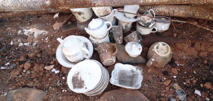 Primero los lavó la nieve, luego la lluvia. Ahora el sol seca los platos. Ririna Alexeyevna protege con cuidado sus platos. Pero no los mueve. Y tampoco los usa.