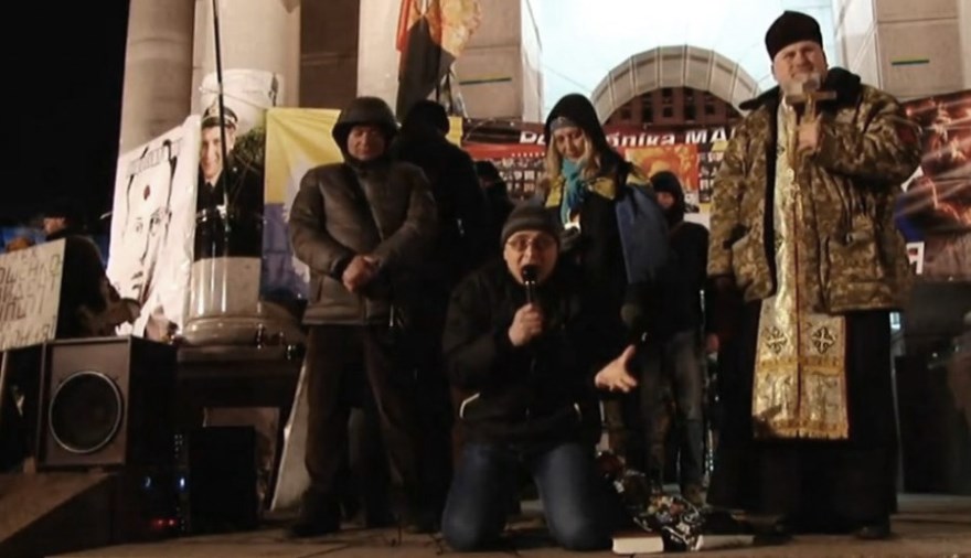 El sotnik Kojanivskiy [comandante del batallón OUN-Ed] llamó a Maidan a “derrocar al régimen judío” (dicho así, literalmente), que se ha mezclado con la basura. Resulta que el segundo Maidan fue cobarde, se vendió por unos puestos y robó dinero de la gente normal. Algo así como una pesadilla.