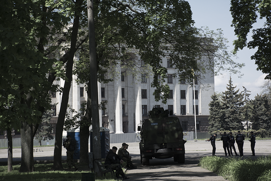 Militarizada la ciudad, el 1 de mayo transcurrió sin un solo acto reivindicativo por el día de los trabajadores. Sin riesgo alguno de la “rebelión separatista” que hace unos días había imaginado Anton Gerashenko, los miembros del SBU –con la cara cubierta y fuertemente armados- tuvieron tiempo de recorrer algunos de los lugares más emblemáticos de la ciudad: las escaleras de Odessa, que tan famosas hiciera el film del mítico director soviético Sergey Eisenstein El acorazado Potëmkin; la estatua de la zarina Catalina la Grande, fundadora de la ciudad; las decoraciones de Pascua en la calle principal o la Ópera, posiblemente el edificio más fotografiado de la ciudad.