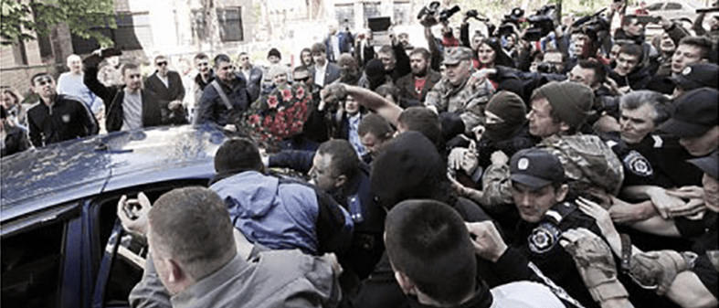El 22 de abril, el líder de la Unión de Fuerzas de Izquierda de Ucrania, Vasyl Volga, fue atacado por “activistas” –nacionalistas radicales- del batallón Azov y de Syla Natsii (Fuerza de la Nación en Zaporozhia, al sur de Ucrania. Volga y sus compañeros habían llegado a Zaporozhia para presentar el programa de su partido, que lucha por el cese de la guerra en Ucrania, el restablecimiento de la paz y la reintegración de Donbass en Ucrania.