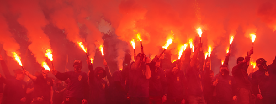 En un acto mucho más espectacular, con su simbología y cánticos de inspiración fascista aunque sin su habitual vestimenta militar, miles de miembros del cuerpo civil y simpatizantes del batallón Azov (2.000 según la policía y 10.000 según el batallón) se manifestaron en Kiev para lanzar un mensaje similar. Al son de los habituales gritos de “Gloria a Ucrania, gloria a los héroes, muerte a los enemigos” o “Ucrania sobre todas las cosas”, el discurso de Andriy Biletsky insistió en los mismos mensajes contra la rendición, contra cualquier concesión a “los separatistas” (en realidad a la población de Donbass) y exigió una Ucrania unida, es decir, nacionalista.