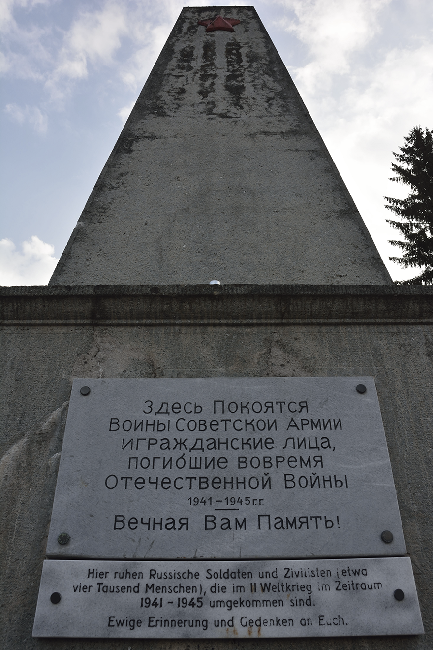 Siguiendo en dirección sur la carretera al barrio de Aich, pasado el mismo, se llega a una zona rural de Spittal, cerca del río. Ahí, rodeado de una pequeña valla, se encuentra el monumento erigido a los alrededores de 4.000 soldados rusos (la versión rusa precisa que se trata de soldados del Ejército Soviético) y civiles que ahí yacen, víctimas del Lager de Spittal.