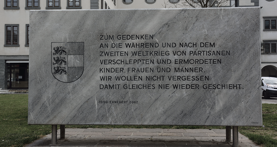No es precisamente Estiria el mejor lugar para buscar un recuerdo agradecido a quienes lucharon contra el nazismo. Pero tampoco lo es Carintia. En Klagenfurt, sus autoridades federales han levantado una placa de denuncia de los crímenes de los partisanos. Quienes traten de buscarlo no podrán encontrar un memorial equivalente de denuncia de los cometidos por las fuerzas que apoyaron a la Alemania nazi.