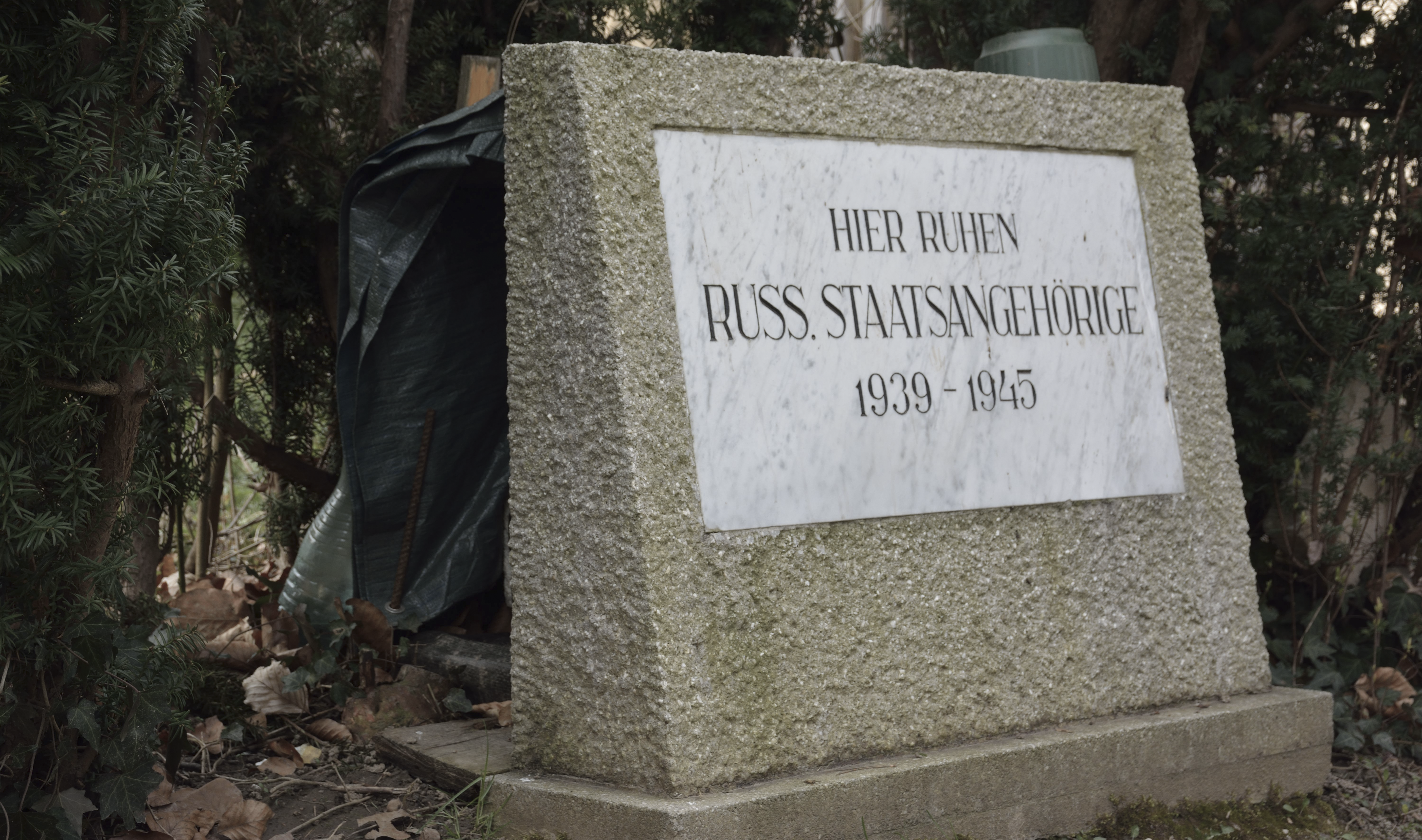En la esquina más alta del cementerio militar, a la derecha y por completo separado del resto, en casi completa oposición al monumento ucraniano colocado a la izquierda de la entrada, se encuentra una pequeña placa dedicada a los ciudadanos de Rusia muertos entre 1939 y 1945. La placa procede de otro cementerio de la región en el que hoy sólo quedan dos lápidas.