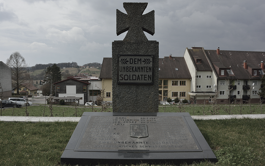 El tercer monumento está en el Soldatenshof [Cementerio Militar] de Mühldorf bei Feldbach en el que yacen los muertos de las dos últimas guerras procedentes de la zona. Pasada la entrada, a la derecha, se conmemora, en alfabeto cirílico y latino, a los muertos de la UNA. A su lado, en el largo montículo en el que consiste el cementerio, están las tumbas de los soldados alemanes de la Segunda Guerra Mundial, muchos de ellos soldados desconocidos. Entre los nombres alemanes o austriacos hay también apellidos ucranianos como Poroschenko.
