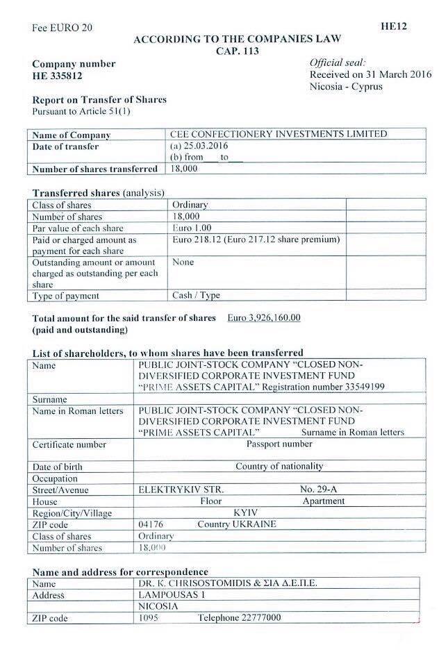 Según Onischenko, el inversor Makar Pasenyuk participó en parte del proceso de negociación, concretamente como negociador contratado por la administración presidencial. Según el diputado, Pasenyuk propuso ejecutar la transacción a través de una compañía off-shore que más adelante aparecería en los papeles de Panamá, concretamente Prime Asset Partners Limited. “El beneficiario estaba oculto. En algún momento nos dimos cuenta de quién era el verdadero comprador: Petro Poroshenko”, explicó a Strana una fuente cercana a las negociaciones.