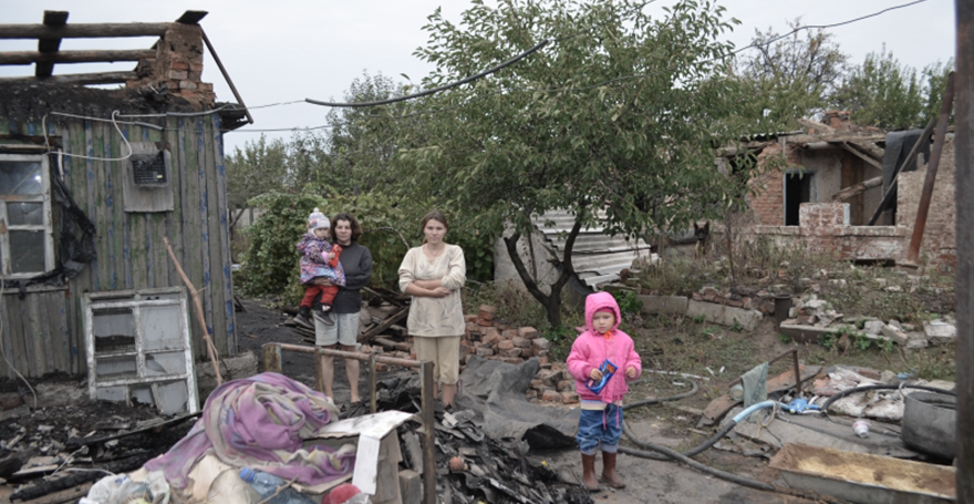 En el terrible verano de 2014, la casa en la que vivía la familia quedó completamente destruida por un proyectil ucraniano. En el lugar en el que una vez hubo una cómoda y acogedora vivienda ahora solo quedan ruinas. Oxana recuerda el momento en el que apenas logró escapar: todo ardía y se colapsaba ante sus ojos. Por suerte, aquel catastrófico día ningún miembro de la familia resultó gravemente herido. Pero solo lograron salvar la televisión y algunos efectos personales.