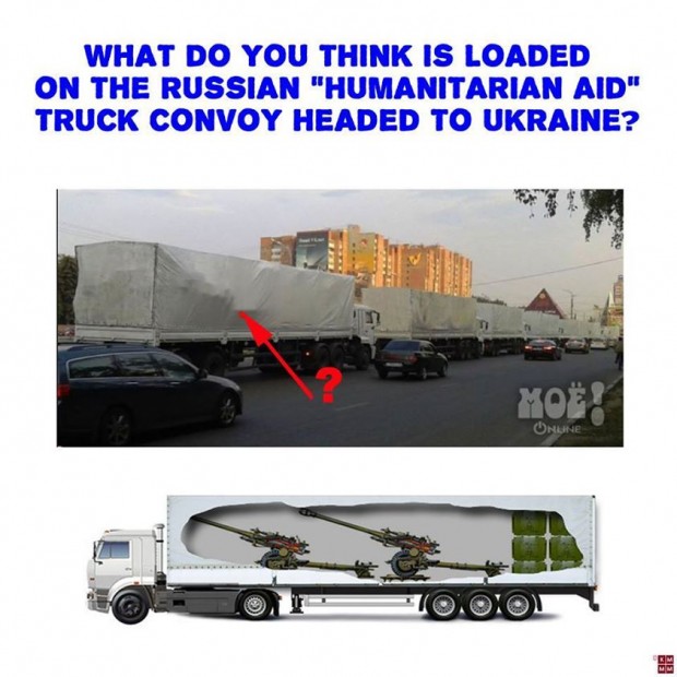 “Otro “convoy humanitario” ruso pasó por los puestos de frontera de Donetsk y Matveev Kurgan en la región de Rostov de la Federación Rusa, otra vez sin cumplir con los estándares internacionales. Nuestro grupo interdepartamental, que está desplegado allí, así como representantes de la Cruz Roja, no tuvieron ocasión de inspeccionar el cargamento que Rusia ha importado a nuestro territorio”, afirmó el oficial. Según explicó, la parte ucraniana no había firmado ningún documento legal de fronteras o de aduana. “No aceptamos nada de esto, hay que monitorizar de alguna manera lo que pasa en los cruces a lo largo de la frontera ucraniano-rusa”, se quejó Slobodyan.