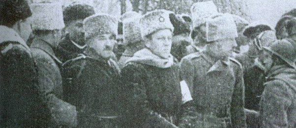 Simon Petliura (en el centro), Yevvhen Konovalets (a la derecha) y Roman Dashkevych durante el Acta de Unificación en la plaza Santa Sofía de Kiev, 22 de enero de 1919.