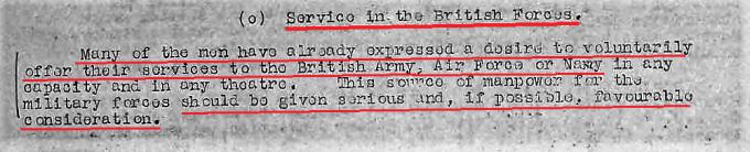 Otro empleado del Home Office de nombre F.L.F Devey se refirió estatus de Personal Enemigo Entregado (Surrendered Enemy Personnel o SEP) que inicialmente permitió el internamiento en Italia y que ignoraba el verdadero estatus de prisioneros de guerra.