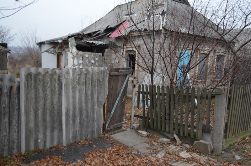 Aquí, un impacto reciente hizo caer el tejado. Los restos se encuentran junto a la casa.