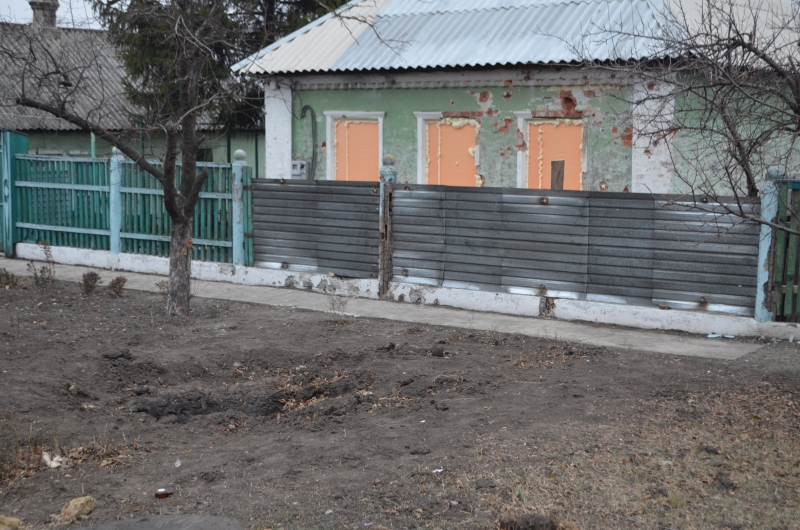 Un proyectil ucraniano impactó delante de esta casa hace tan solo un par de días, causando daños en la fachada de la casa y las ventanas.