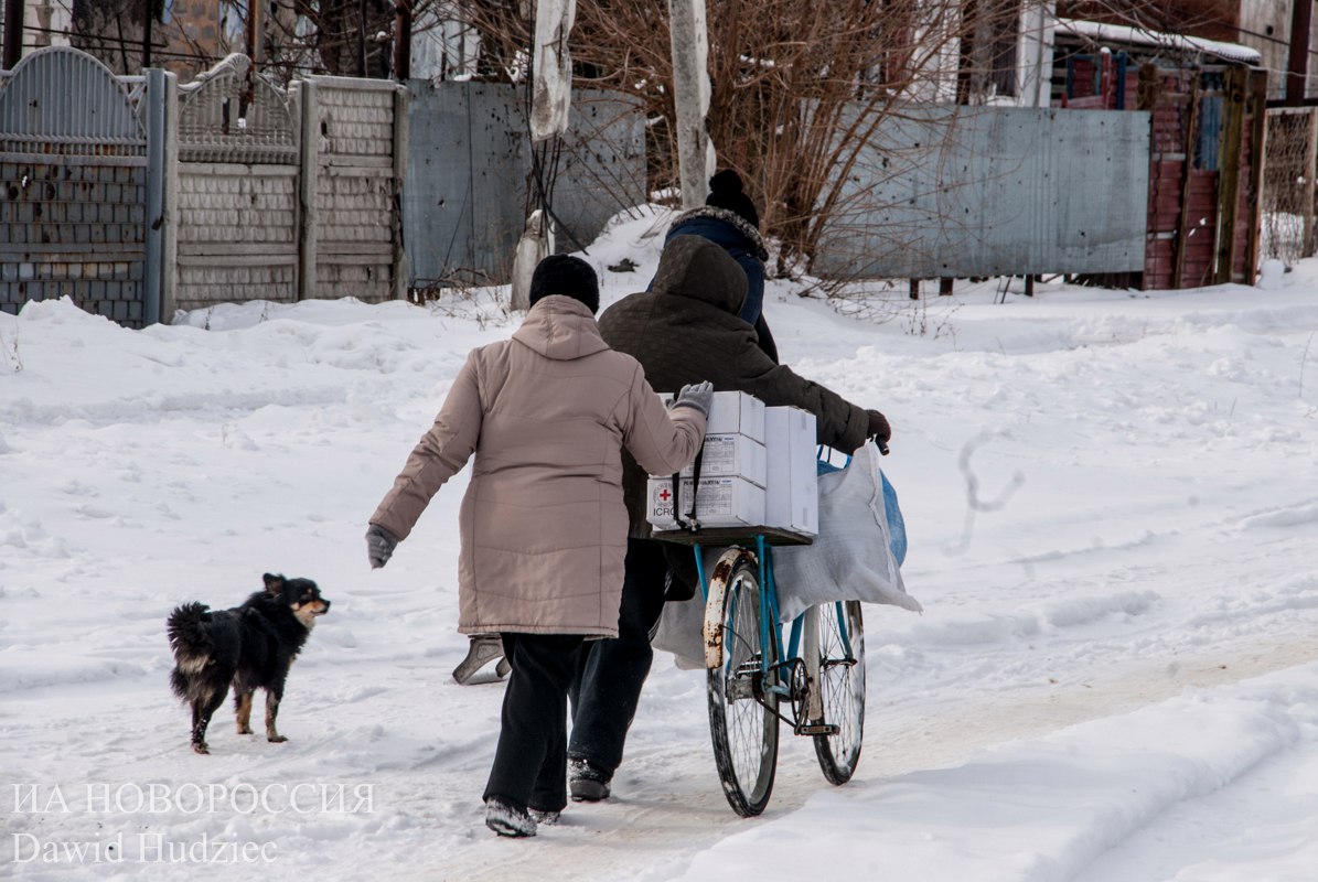 “¿Ahora qué? ¿Cuánto más vamos a vivir? ¿Cuándo se marcharán? Dadnos armas e iremos con vosotros”, nos saludan dos residentes de Spartak –dos mujeres que se acercan a por ayuda humanitaria– a nuestra llegada.