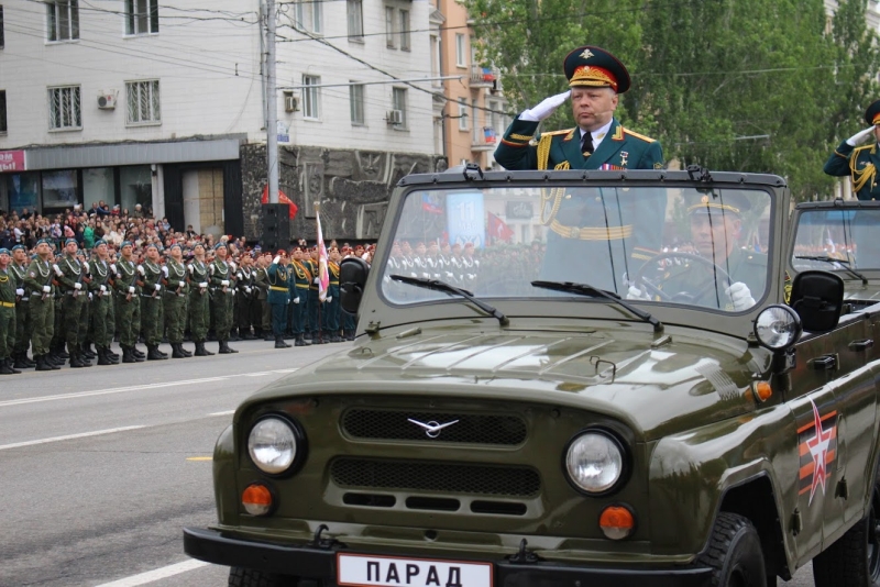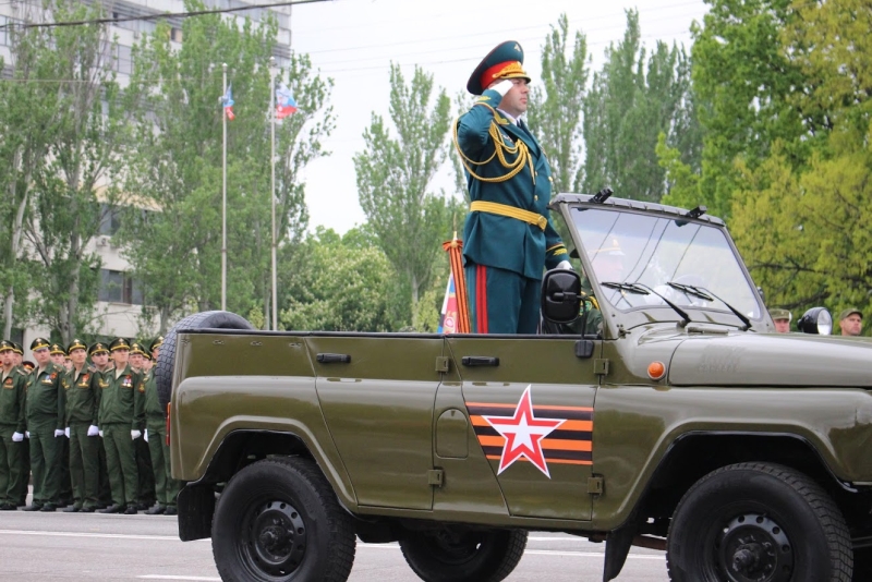 Pronuncia su discurso el líder de la RPD. “Camaradas soldados. Queridos veteranos, ciudadanos e invitados de la República Popular de Donetsk. Les felicito en el 72º aniversario de la gran victoria del pueblo soviético sobre el invasor fascista. Hace 72 años, nuestro pueblo derrotó al más terrible demonio de la humanidad: el fascismo. Nuestros antepasados se levantaron con coraje para defender nuestro gran país y la lucha acabó por romper al enemigo. Hoy celebramos esta gran fiesta: el día de nuestra victoria. Tras el desfile de equipamiento militar y de la élite de las Fuerzas Armadas de la República Popular de Donetsk, esta plaza se llenará con miles de personas que se unirán a la marcha del Regimiento Inmortal. Honramos la memoria de nuestros héroes caídos. Por desgracia, hoy la guerra está a nuestras puertas y a nuestros antepasados se unirán imágenes de nuestros hermanos e hijos. Pero, como hace 72 años, ahora también vamos a ganar esta guerra. Nuestra causa es justa. El enemigo será derrotado. La victoria será nuestra”, afirma Zajarchenko.