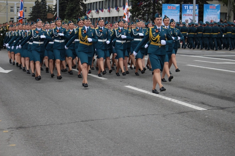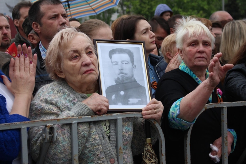 Es un solemne y majestuoso espectáculo: en las mismas filas están los vivos y los muertos. Hoy están juntos. Es la celebración de todos ellos: padres e hijos, abuelos y nietos, todos aquellos que lucharon para proteger su tierra de Donbass.