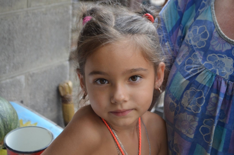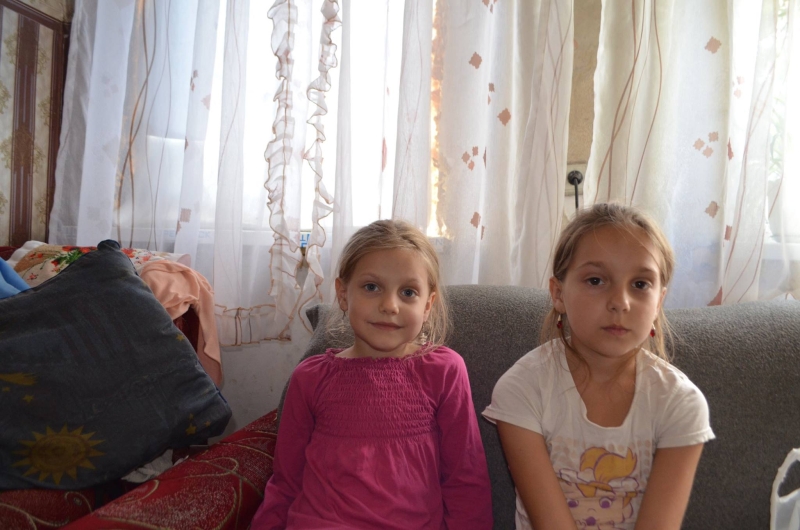 Lera, de cinco años, vive en la calle Montenegro. Justo antes de nuestra llegada, dos proyectiles impactaron en el tejado de la casa. La niña tiene mucho miedo de los bombardeos y sus labios se ponen azules y se le acelera la respiración. Su madre teme que tenga problemas de corazón y quiere realizarle pruebas en el hospital para comprobarlo.