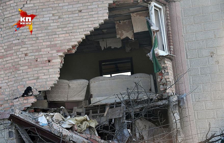 Nos acercamos a la zona del aeropuerto. Dmitry conoce como la palma de su mano todos los detalles: “Ahora, en la calle Stratonavtov pasaremos por una casa sin paredes. Fue derruida por las explosiones. La decoración y los muebles se han quedado donde estaban”.