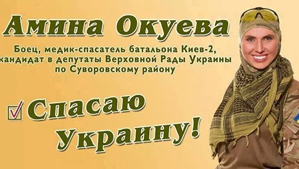 Amina Okueva se alzó al estrellato poco después. A finales de enero apareció en una imagen en las barricadas de la calle Grushevskiy publicada en el blog de la nacionalista ucraniana Olena Bilozerska. El 8 de febrero de 2014, concedió una entrevista a la web Islam en Ucrania, en la que ella misma se presentaba: “Vivo en Odessa desde hace, más o menos, 11 años. Tomé esa decisión porque ya era imposible seguir en la Federación Rusa. Para los musulmanes practicantes, especialmente en Ingusetia y Chechenia, hay constantes problemas. Allí, en Odessa, conocí a mi marido cuando se trasladó a Ucrania. Nos casamos allí también”.