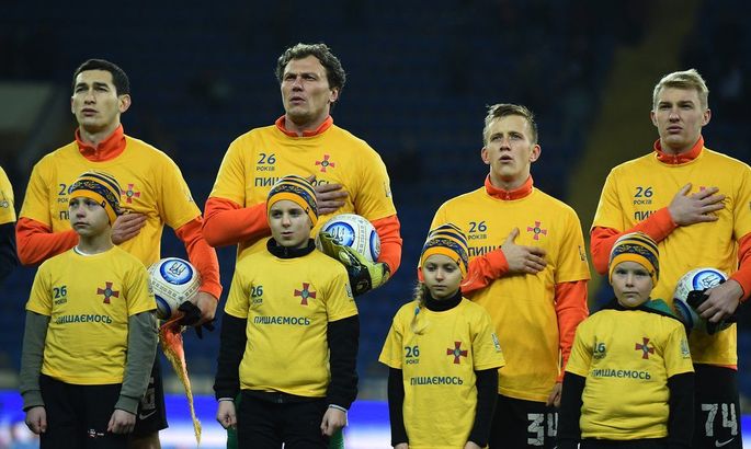 En primer lugar, llegó la polémica que rodeó al partido Olimpik-Shakhtar. Dos equipos sin hogar de Donetsk se encontraron en Kiev. Se les ofreció que, antes de comenzar el partido, hijos de participantes de “ATO” saltaran al campo y que lo hicieran vistiendo camisetas con el texto: “Mi papa es mi héroe”.
