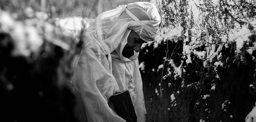 El silencio desaparece inmediatamente. En la cabeza de todos nosotros está la idea de que nos han detectado cuando nos acercábamos al pueblo. Cuando nos movemos, guisantes mortales golpean contra las paredes. Agachados, empezamos a correr. Saliendo de la blanca nieve, nos mezclamos con el barro y la tierra. Se acelera la respiración y la necesidad de correr da un golpe de adrenalina. Es la única forma de sobrevivir. Al correr se siente la sensación de ser un blanco, de ser la presa de quien mira por la mirilla de un arma. “Corred al patio”, grita un soldado.