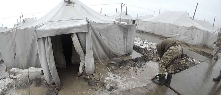 Las imágenes muestran las terribles condiciones de la zona militar, tiendas completamente anegadas y hundidas en el barro, con el agua que había ascendido a un nivel más que digno, por lo que dormir ahí es imposible. Los “guerreros de la luz” que han recibido “entrenamiento militar” allí confirman que el comando no ha dotado a la base ni siquiera con suelos de madera, por lo que las tiendas se hunden en el barrizal.