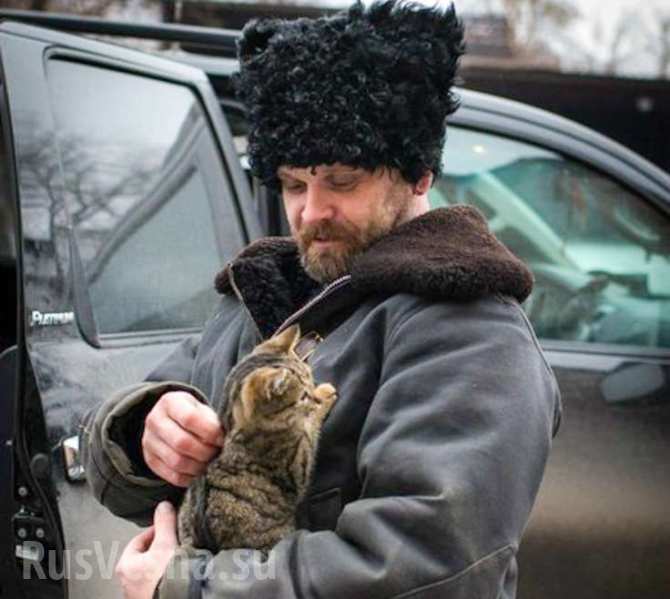 Otra cosa que recuerdo, por ejemplo, es que le gustaban mucho los gatos. Cuando estábamos luchando por Debaltsevo en Komissarovka teníamos muchos gatos, más de veinte. La gente, huyendo de la guerra, abandonaba las casas y con ellas a sus animales domésticos. Borisich vino donde estábamos, vio esa manada de gatos, cogió uno y se lo puso en el hombro. Tengo una foto de él, de pie, sonriendo, con su gorro de piel cosaco y el gatito igual de peludo en su hombro. En el cuartel general de la Brigada estaba también su gato favorito, Tigre, que vivía en su despacho. Tigre era el favorito de todo el personal. Tras la muerte del comandante, uno de sus soldados se lo quedó en memoria de Borisich.