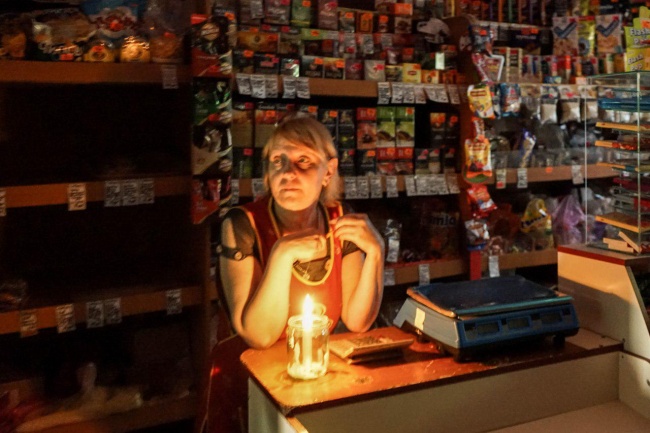 En una tienda local, situada junto al edificio de viviendas en el que impactó el proyectil, los clientes buscan productos bajo la luz de las velas. Hay varias mujeres. Comentan lo ocurrido entre ellas. Dicen las mismas cosas que siempre se cuentan tras los bombardeos: que ya son cinco años y todo el mundo está cansado, que los niños empiezan a tartamudear a causa de experimentar el horror diario, que los representantes de la misión de la OSCE ignoran lo que está ocurriendo y no se acercan a los lugares bombardeados…