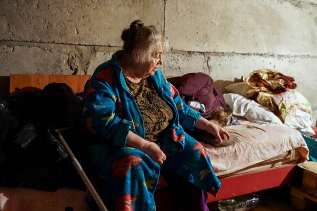 En el refugio hay niños y mujeres mayores. Una niña, Nastia, saca los dibujos que ha hecho sobre sus experiencias en los bombardeos. También está ahí Larisa, una pensionista con su gato. “Mire, ya perdió la punta de la cola en 2014”, muestra la mujer. Está constantemente en el refugio. “Venimos aquí en cuanto empiezan a disparar. Y estos días no salimos. Bueno, ¿cuándo va a tener suficiente sangre ese idiota de Poroshenko? Y Yatseniuk, Turchinov, Tyahnibok…vergüenza les debería dar a todos esos sinvergüenzas matar niños. ¿Y para qué?”, se quejó la enfadada mujer.