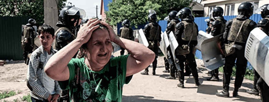 “Desde hoy, este campamento no va a existir. Implantaremos el orden ucraniano. Freiremos el shahslik”, se escucha decir al miembro de la “Milicia Nacional” que graba la destrucción del campamento. Y prosigue diciendo que “las chabolas de los romaníes están acabadas”. Para entonces ha llegado ya una excavadora municipal y varios miembros de la Policía Nacional vestidos de uniforme y con chaleco antibalas. Pero ellos no interfieren en los actos de los nacionalistas.