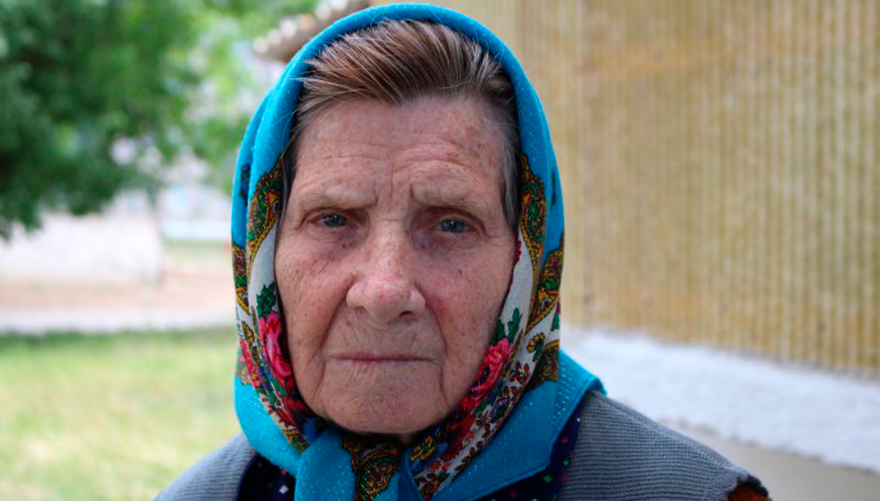 Anna Matveevna tiene 84 años. Nació en la región de Chernigov de Ucrania. Parte de su infancia la pasó en guerra. Y pasa sus últimos años en guerra otra vez. Durante toda su vida ha trabajado duro: en una granja, en la fábrica, en un taller textil. Siempre vivió sola. En 2016 un proyectil impactó en su balcón. El balcón y todas las ventanas del piso quedaron destruidas. Anna Matveevna sobrevivió de milagro.