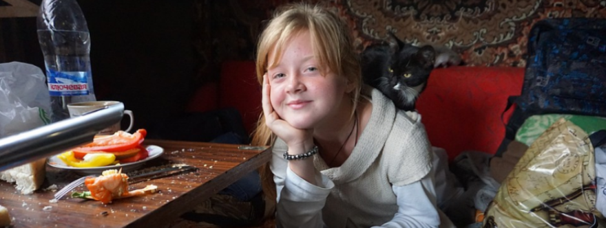 “Voy en autobús a la escuela. Estoy en séptimo y solo tengo dos compañeros”, dice tímidamente Vika. “Cuando acabe la escuela, quiero que mi vida esté conectada a los animales”. Su historia es dramática desde el principio: su madre, Tatiana, nació con un defecto en el corazón y los médicos le prohibieron terminantemente que tuviera hijos. Se casó y tuvo a su hija. Fue su victoria, de ahí el nombre de la niña. Tatiana murió pocos años después. La pequeña Vika se quedó con su padre en el kilómetro 71, una localidad cercana a Spartak. Cuando comenzó la guerra, su padre fue a trabajar a Rusia, donde sus amigos le llevaron al hospital en estado grave. A los pocos días, murió de meningitis en el hospital. Así que Vika se quedó sola con sus abuelos, huérfana y con una casa destruida.