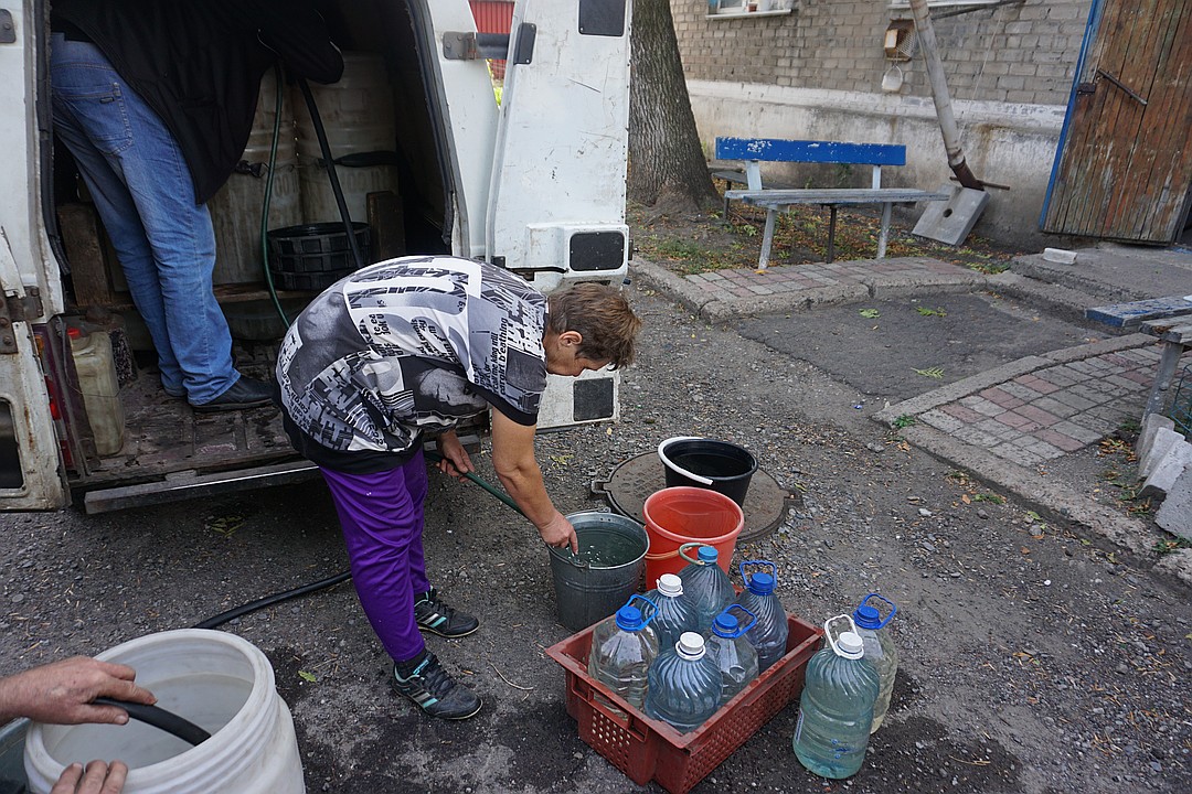 Toda la población adulta de Spartak se alinea con carros y recipientes junto al camión del agua. Trae agua desde Yasinovataya dos veces a la semana. Los residentes afirman que antes había agua en los pozos, pero ya no queda nada. En Spartak no hay agua, luz o gas: las condiciones son verdaderamente espartanas. Cómo sobreviven los residentes que permanecen allí y por qué no se han marchado son las dos preguntas retóricas que los periodistas repiten a los residentes. Yo ya sé la respuesta: nadie les ha ofrecido una casa que haría posible que estas personas se marcharan. O esa casa ofrecida no era mejor que el sótano.