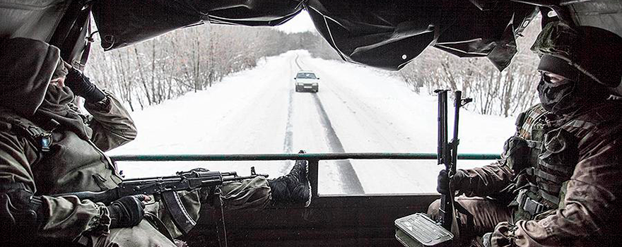 “Hay que apagar el motor o no sabrás dónde va a caer”, insiste Grom. “Si hay que salir no hay que saltar, hay que tirarse al suelo boca abajo”. Paramos en uno de los puestos unos minutos y comentamos la situación. El cielo está encendido como si fuera Año Nuevo. Hemos dejado atrás una desagradable traca de proyectiles. Después de diez minutos en el puesto, la radio informa de que seis proyectiles de 120mm han caído justo donde había parado nuestro coche. “Ahí lo tienes, el PSRN en acción”, suspire Grom. “Hemos tenido suerte, un poco más y…”. Es evidente que se preocupa más que yo. Porque él entiende el significado real del peligro que acaba de pasar.