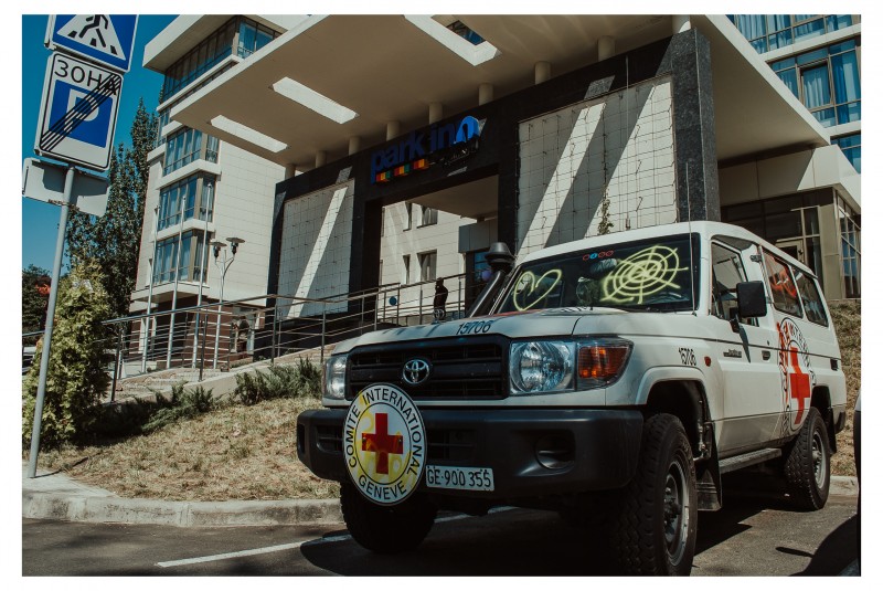 Los bombardeos no se detuvieron tras la firma de los acuerdos de Minsk. La presencia de observadores internacionales tampoco detuvo las hostilidades. Los residentes de Donetsk acudieron al hotel Park Inn, donde se alojaban los representantes de la misión de observación de la OSCE y miembros de Cruz Roja. La población exigía a los representantes extranjeros que denunciaran las infracciones al “alto el fuego”. Los manifestantes gritaban “Donetsk por la paz”, “no queremos guerra”, o “Donetsk ciudad de paz” y pintaron los coches de las organizaciones internacionales. Donetsk, 23 de julio de 2015.