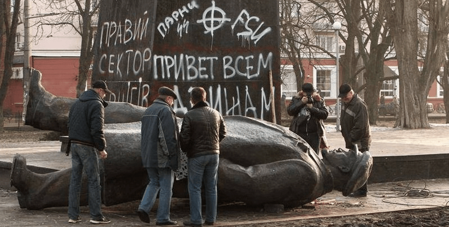 “Hace cuatro años, el Parlamento de Ucrania adoptó un paquete de medidas sobre la descomunización. En este tiempo, se ha cambiado el nombre de 987 ciudades, 25 distritos, casi 52.000 objetos han sido renombrados y alrededor de 2.500 monumentos y memoriales que contenían propaganda del régimen totalitario han sido desmantelados”, escribió orgulloso el líder del Instituto Ucraniano de la Memoria Nacional, Volodymyr Vyatrovich.