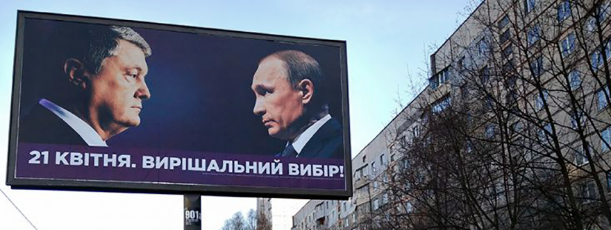 Los carteles electorales, que rápidamente se convirtieron en el principal tema de discusión en la red en los países postsoviéticos, fue organizada por el equipo de campaña de Petro Poroshenko, aprobada directamente por el propio presidente. El líder ruso aparecía cara a cara con su homólogo ucraniano, a los que les acompañaba la inscripción “21 de abril, una elección decisiva”. La campaña sugiere que, el día de la votación, los ucranianos tendrán que elegir entre Petro Poroshenko y Vladimir Putin, es decir, el candidato que lidera todas las encuestas, Vladimir Zelensky.