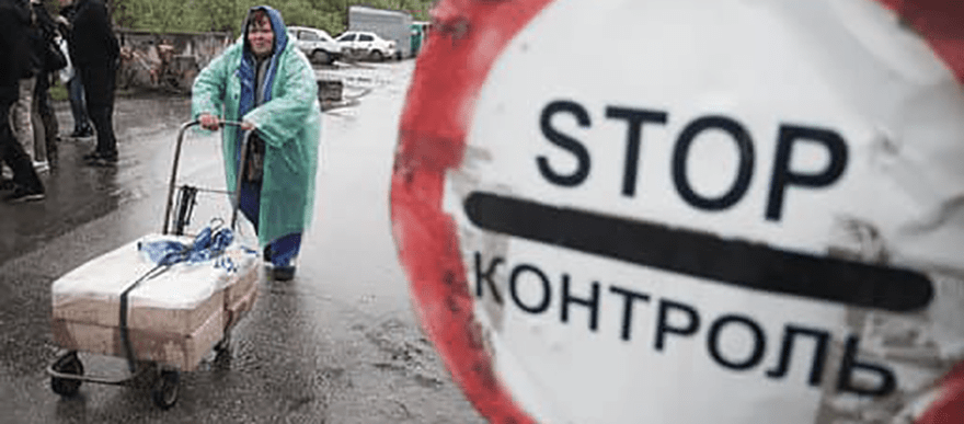 Puesto de control de Stanitsa Luganskaya, uno de los más transitados por la población a través de un destruido puente.
