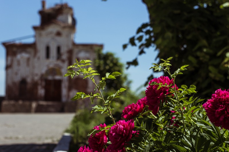 Junto a la carretera que va al destruido monasterio veo nuevos postes de metal que en el futuro separarán la carretera del cementerio. Los muros que antes lo rodeaban fueron destruidos en la batalla por el aeropuerto de Donetsk. Una de las tumbas destaca sobre las demás por unas bonitas flores. Eso solo puede querer decir que sus familiares han ignorado hace poco tiempo la petición de las autoridades de la ciudad de no visitar el que es uno de los cementerios más peligrosos de la RPD y han venido a honrar la memoria de su familiar fallecido. Entre las tumbas destruidas veo numerosas nuevas cruces de madera. Pese a la alta probabilidad de que haya minas o proyectiles de artillería sin explotar, la población sigue viviendo a enterrar a sus seres queridos en el cementerio Novo Ignatius.